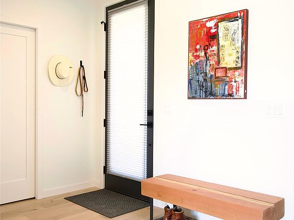 This custom, architect-designed home is a minimalist interpretation of the traditional farmhouse. An entry foyer, complete with coat closet, bench and half bath provides a gracious welcome for guests. The foyer opens to the main living area, where large windows at both ends of the house bring light into the kitchen, dining and living areas. The kitchen boasts custom European-style cabinets, a large island, high performance appliances and enough counter space to tackle Any culinary project imaginable. Opposite the kitchen is an under-stair reading nook, which also makes a great place for friends to sit and sip wine while you put the finishing touches on dinner. The living room opens directly to the back patio where a pergola creates a space for grilling while allowing just the right amount of southern sun into the home throughout the year. The downstairs bedroom, accessed through sliding doors, also makes an ideal home office. In the primary suite, large south-facing windows capture expansive views of Methodist Mountain and the Sangre de Cristo Range. The primary bath features a large tiled shower and double vanity. The second bedroom includes a built-in desk and large windows with views to S-Mountain and the Collegiate Peaks. In this all-electric home, a super efficient heat pump provides year-round heating and cooling for comfort in any weather. The oversized single-car garage includes extensive built-in shelving and a dedicated work area with its own roll-up door and patio, making it ideal for bike maintenance or other projects. Construction plans available for a 650 SF single-level ADU. As part of the rapidly developing Two Rivers Subdivision, the home's location benefits from easy access to everything Salida: a cafe and shops, fishing on the Arkansas, mountain bike trailheads, and a neighboring nature trail perfect for dog walking - all within a 5 minute bike ride to downtown.