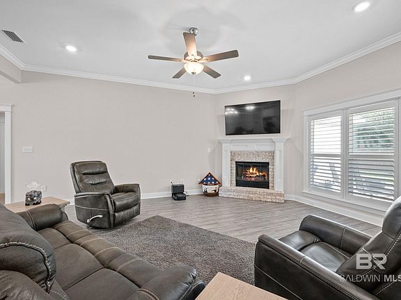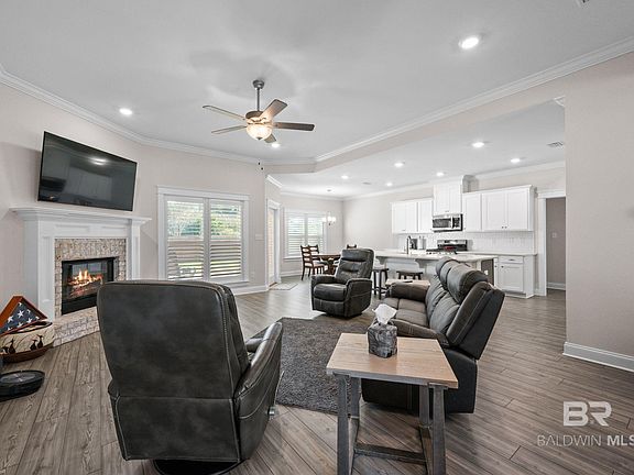 Welcome to this 4 bedroom, 3 bathroom, Gold Fortified home in "The Tracery" in Fairhope, a tranquil community and one of the last subdivisions built by Truland. Truland's Branson floor plan is open, bright, and airy; the layout and uninterrupted sightlines make the house feel even larger than its designed 2348sqft. With ten-foot ceilings, six-foot windows, custom plantation shutters, and EVP flooring, this house models understated elegance. Recent upgrades (totaling $65,000) include custom shutters, a vented fireplace with electronic ignition, updated soft-close slides on drawers (throughout the entire house), a 24kW whole-house generator, a new privacy fence, back porch pavers (including an extended back patio), and a rain-sensing irrigation system (front and back). This floorplan offers two bedrooms on one side for privacy, while the spacious primary suite features a vaulted ceiling, separate his/her vanities, walk-in tile shower, garden tub, and his/her walk-in closets. The kitchen boasts stainless steel appliances, granite countertops, white cabinetry, and a stainless steel apron-front sink. Completing this house is an attached, two-car garage. Bonus: High-quality items that can convey with the home (buyers choice), all purchased in June 2023, include an LG French Door refrigerator for the kitchen, an LG refrigerator for the garage, an LG front-load washer and dryer set with pedestals, a 65” Sony XR 4K TV for the living room, a 55” Sony XR 4K TV for the master bedroom, an additional 55” Sony XR 4K TV for bedroom 4, and a Weber propane grill. Sellers are also open to conveying select furnishings, including queen beds with Nectar mattresses, an adjustable bed for the master bedroom, a sofa and recliner set for the living room, and a kitchen table with six chairs. This property offers not just a beautiful living space but a near move-in-ready experience with modern appliances and premium furnishings. Buyer to verify all information during due diligence.