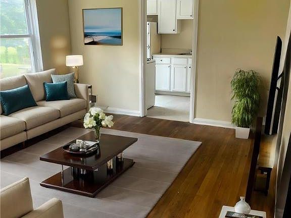 Solid Brick Home situated on quiet tree lined street in Easton. Large light filled living room with hardwood floors opens onto an efficient kitchen and convenient laundry room. The two bedrooms and updated bathroom complete the second floor. Gas heat and central air are an added bonus! The private lot is large, has a lovely patio and could host off street parking if needed. Less than 1 mile to Route 78-makes interstate commuting a breeze! Call today-This one won't last! Virtually Staged to give you some ideas on the possibilities!