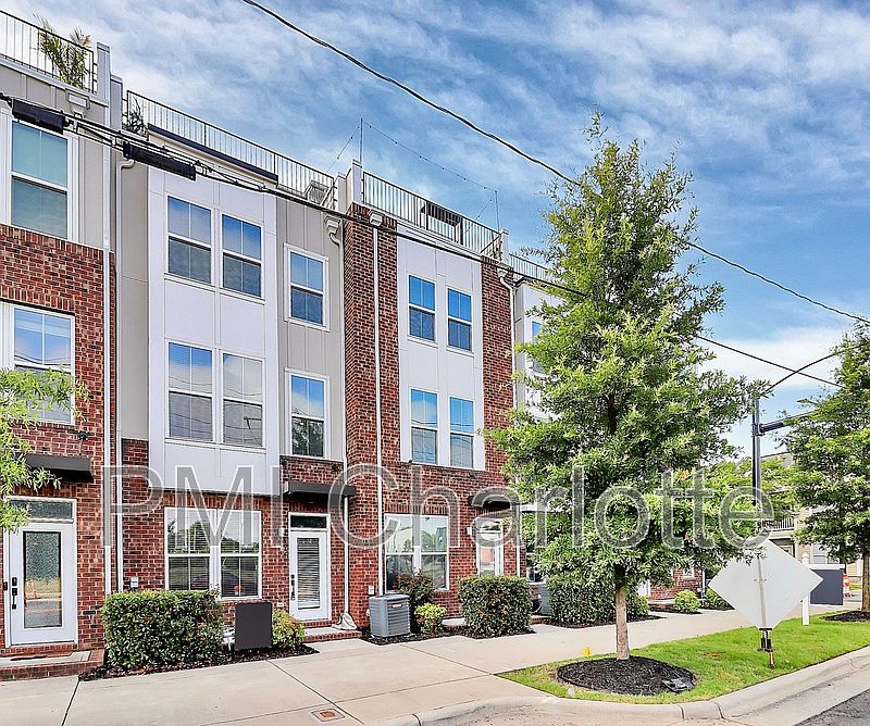 Luxurious townhome living near NoDa. Spacious 4 Story Townhome, 3 BR/ 3.5 BA with 2 car garage located across the street from vibrant Optimist Hall. The 2nd floor has a modern layout with gourmet kitchen (stainless steel appliances, gas range & island), dining area and family room making the perfect setting for entertaining. The 3rd level offers a lavish owners suite with double vanities, walk in shower and walk in closet. This floor also has a secondary bedroom with its own private bathroom. The 4th floor offers an open loft and another bedroom with full bath and large closet. Tankless water heater. The rooftop terrace provides an AMAZING VIEW of the Queen City skyline. The two-car tandem garage has been finished with epoxy floors so could be converted into a workout room or office. Stackable washer and dryer are included. Two blocks to the Parkwood Light Rail station. Easy access to Uptown and Southend. Must see!! Pets are conditional. Resident liability insurance is required. PMI of Charlotte requires an extensive background and credit check for all potential candidates. Non-refundable $50 application fee per adult is required and must be paid online. Pet fees totaling up to $450 and pet rent between $30 and $50 per month is required for an approved pet. All PMI of Charlotte residents are enrolled in the Resident Benefits Package for $70/month which includes HVAC air filter delivery, etc.