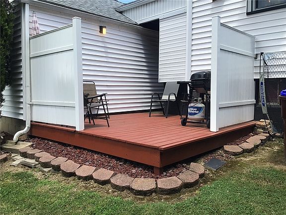 Cape cod tucked away in quiet neighborhood. Nothing to do but move in! Comfortable living room and eat-in kitchen. Two bedrooms down, third is up, with separate seating area or office space. covered breezeway connects to nice garage, and also leads to cozy patio overlooking rolling, private back yard. Walk-out basement provides opportunity for additional living space with outside access. Some hardwood floors. Roof 2012