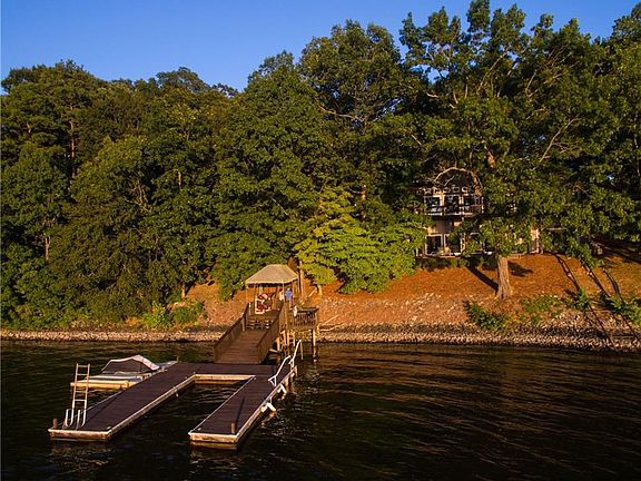 Custom, well-maintained lakefront home with a great open floor plan and extensive lake views throughout the home. Perfect for empty nesters that want one level living plus additional room for guests upstairs and downstairs. Private pier & U-floater; 194 ft. WF, boathouse with rails . Lakeside deck & patio for evening relaxation. Very private setting. Main level all hardwood & tile flooring, granite counters. All season porch with slate floor with access to lakeside deck. Move-in ready