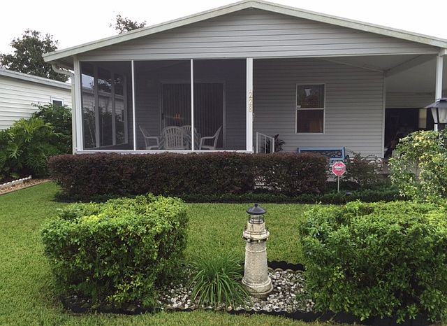 Near Disney, on highway -27. Pretty and dainty 2/2 cozy home prides new wood floor, and is fully-furnished (except for 2nd bedroom bedframe), recently improved, has cute living room, skylight bath, well-maintained move-in ready home in the 55+ Polo Park golf community. Golf course is just a stone's throw away. Home is at the end of the community - thus making location very quiet and peaceful. Lawn is the best on the street. An attractive home perfect for year round or seasonal living. Kitchen has lots of cabinet space, separate dining area, large living room, front sitting room and lovely front screen porch for private or entertaining use. Polo Park offers a 9-hole golf course, two pools, two clubhouses, shuffleboard, tennis and activities galore for the young at heart and golf-lovers. Play golf 24/7 near home.