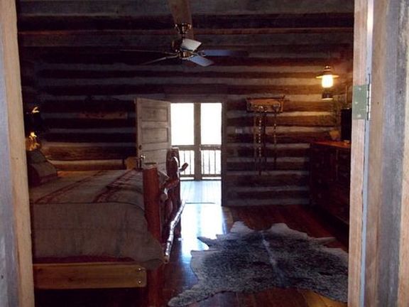 Charming log cabin home on beautiful property featuring 2 historic cabins from North Carolina joined in the middle by room constructed from antique lumber from Alabama to create one large cabin with fabulous kitchen(center),wonderful high ceilings,stained glass windowed great room, wrap around screened porch,open porch on the front. A step into yester year but modern amenities-central heat and air,etc. 18.23 wooded acres with creek and pasture for horses or livestock. Property adjoins a 1000 acre privately owned hunting club that the new owner can join if desired.