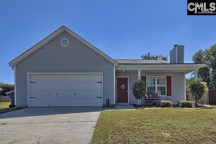 Don't miss this adorable home in the sought after Oak Point Community with a welcoming front porch and plenty of room for your rocking chairs. As you enter this home you are greeted by a spacious great room with a vaulted ceiling and a cozy wood burning fireplace. The eat-in kitchen features plentiful stained wood cabinetry, an above the stove microwave, a pantry, and windows that allow the natural light to pour in! The Backyard is fully fenced in with a covered porch, and a concrete pad. A double garage, plenty of storage, driveway spaces, clean and move in ready. Also, convenient to shopping dining, interstates, Lake Murray, award winning Lexington One School District and so much more!