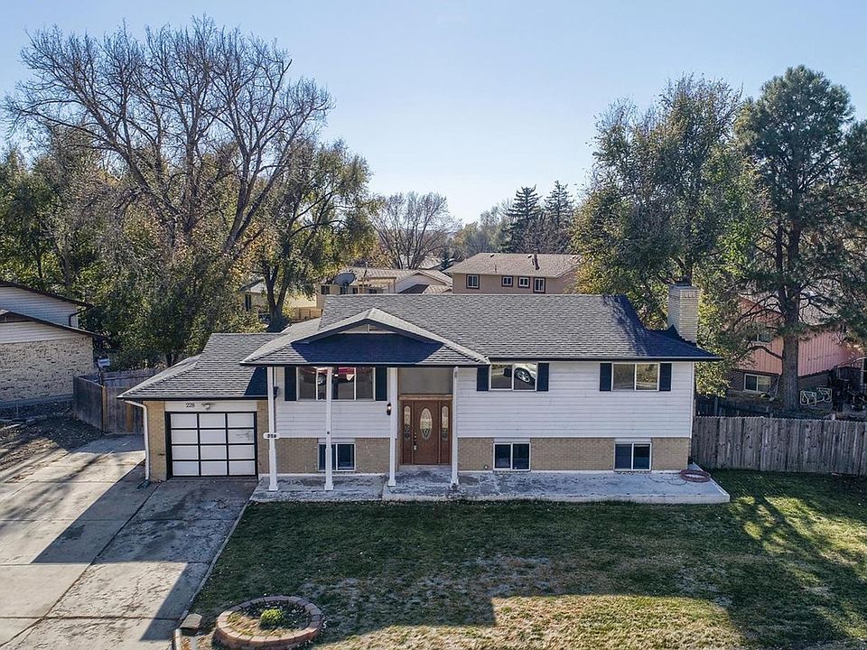 Lovely family home on huge lot, fenced back yard and tons of parking space with RV parking too. Located right across from the park and one of the best disc golf courses in the area. The park also boasts a creek, walking and hiking trails and kids play area. Close to everything and minutes from Fort Carson! This home has brand new carpets, a new furnace, updated main-level bathroom, newer roof, fresh paint and a bonus newly finished sun-room! Second master bedroom with separate dressing area and en-suite, will be wonderful with some cosmetic updates.