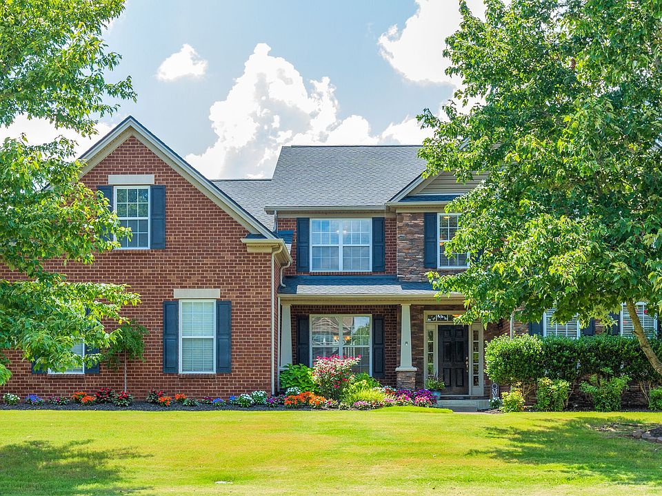SELLER RELOCATING - REDUCED TO $574,900. Brick & stone home - 3 car garage boasts wonderful curb appeal. All new white kitchen cabinets, granite counter tops, tile backsplash, range hood and dishwasher all 2022. Luxury Vinyl Tile on main level 2022. Roof 2021. Gas water heater 2022. 2nd floor HVAC 2021.Open bonus room as well as a closed 21x15 flex room. The large closet by flex room has the potential to be converted into a bath to make a 2nd master. Huge unfinished walk in storage room 21.5x16 could be finished. All 4 bedrooms have walk in closets. The yard and plant beds are gorgeous and maintained by a sprinkler system. The 3 car garage has built in cabinets, a chest freezer and garage refrigerator that remain as well as the swing set. This home is in fantastic condition. Come and see!