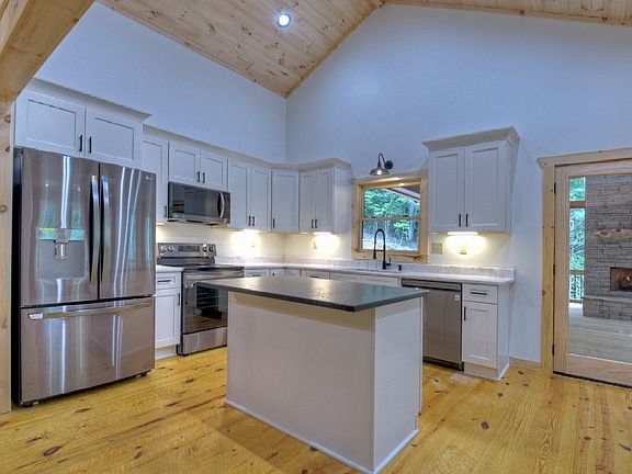 Experience the secluded & private cabin of your dreams in a beautiful natural setting in this upscale neighborhood (short term rentals allowed)! This charming retreat is crafted with meticulous attention to detail, boasting impressive floor-to-ceiling windows & soaring cathedral ceilings. The tranquil creek flowing through the property adds to the sense of relaxation & serenity. With four bedrooms, two and a half luxurious bathrooms, and custom kitchen and bath cabinets, this is the ultimate place to unwind. The modern rustic design, rough sawn hardwood flooring, and stunning granite countertops create a one-of-a-kind atmosphere. The spacious outdoor deck, measuring 20 x 24, and the stone wood-burning fireplace with a bonus rec area underneath provide the perfect space for entertaining or unwinding any day of the week. High Speed Internet through ETC!