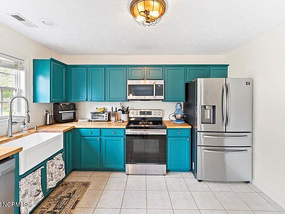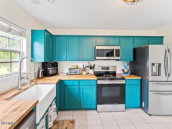 You do not want to miss this beautiful two-story home located in the popular neighborhood of Kanton Hills. As you pass through the front door, you will be welcomed into the inviting living room with custom wall accents, LVP floors, and a gas fireplace. The kitchen has been recently upgraded with butcher block counter tops, a kitchen island, new appliances, and a farmhouse sink. Upstairs you will find three full bedrooms with a bonus/flex room that has a separate room with French doors--great for an office, play room, craft area, etc. The principal suite has trey ceilings, a jetted tub, separate shower, double sinks, and a walk-in closet. The backyard has plenty of space, sitting on a generous lot sized at .70 acres. There is also a deck, ideal for relaxing and enjoying perfect Fall weather, along with a shed for extra storage space. Minutes to MCAS New River and the beach!