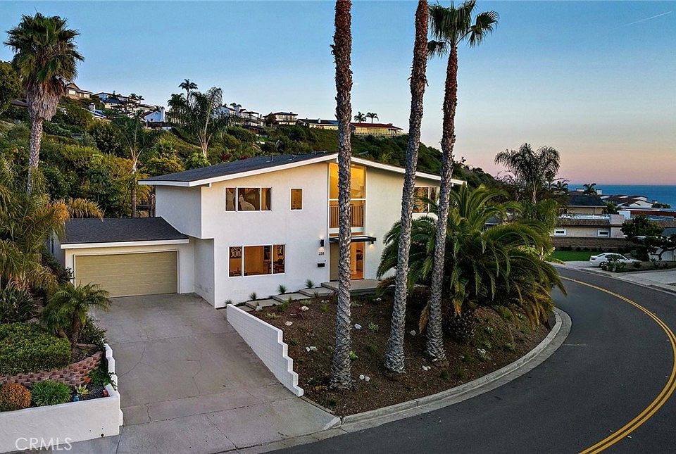 Recently renovated throughout with no intention of ever selling, this home is dialed-in at a level rare to come by. Situated in the hills right above downtown, this exceptional location captures ocean views while offering expansive outdoor spaces. A crisp mid-century elevation enhanced by mature palms, ascending clerestory windows, floating top-cast concrete steps, & a beautiful clear-cedar entry door. The front elevation is garnished by new low-maintenance landscaping & old-growth palms. A clean & crisp Scandinavian-inspired interior with abundant natural light draws you inside. Inside, peek ocean horizon views add to the family room warmed by the newly limewash-plastered fireplace. Finished in Oak-like LVP flooring, the family room flows into the dining & kitchen creating one large, open living space. All brand new & hardly-used, the impressive kitchen is newly-finished with Taj Mahal stone counters, quiet cabinetry, brand-new stainless appliances, & polished nickel faucet. The bonus room (potential kids play room or 5th bed) is just off the powder & completes the lower level. Relaxing interiors flow seamlessly into a massive backyard. Al fresco dining & lounging adds to an expansive grassy yard, rare to come by & so desirable. A very aesthetic & newly-rebuilt staircase anchors the home leading to 4 generous bedrooms. 3 guest bedrooms (1 ensuite w/ direct Dana headlands view) access the most luxurious guest bathroom. An operable skylight tempers the second floor. The primary suite features walls of glass framing crisp ocean horizon, sunsets, & Catalina Island views. An all-new, spa-like bath features a curbless shower with dual heads, dual sinks, aesthetic finishes, & high-end polished-nickel fixtures. The walk-in closet offers clever clothing organizers. NEW Improvements: 7.447KW solar w/ 2.0 net metering & 25-yr warranty, 125A panel, cooling-shingle roof 2023 w/ Velux skylight, ducting, dual-zone A/C, fully re-piped & re-wired, all lighting, all flooring, base & casing, doors & hardware, entry door, all bathrooms, kitchen, stairwell, entry stairs, landscaping & irrigation, fencing, dog-washing station & stackable laundry. An amazing opportunity combining several major values: significantly renovated top-to-bottom, major space inside/out, major ocean & coastline views, no power lines, extremely quiet yet easily walkable to downtown restaurants & cafes, bikable to world-class surf at Trestles, nearby 2.5 mile beach trail, SC Pier & sandy beaches.