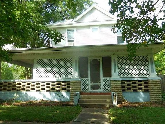 Incredible opportunity to own this 2-story home in the heart of Historic Council Grove. Interior of home offers over 1600 square feet of living space. Home features 3 bedrooms, 1.5 bathrooms, detached over-sized 2 car garage, fenced backyard, 2 storage sheds, mature trees, covered porch and screened patio area on a corner lot. Located within minutes of Council Grove Lakes.