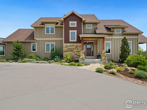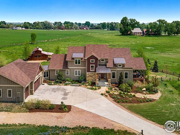 A blend of modern luxury and tranquil living awaits in this 6-acre paradise within just a few minutes drive of downtown Fort Collins! With captivating views of the mountains and the rural countryside that envelops the property. This exceptional equestrian property is is proof that you CAN have it all. This property comes complete with a monitor barn, 3 pastures for rotation and hay management, a sand arena, and 3-rail massive fencing. Step inside and be amazed by the elegance of your new home. Every inch of the interior has been meticulously designed with great attention to detail. The open-concept layout perfectly integrates the living spaces, and with high, beamed ceilings and premium finishes throughout, this home offers an atmosphere of casual refinement. The gourmet kitchen is a dream for every culinary enthusiast, featuring top-of-the-line appliances, soapstone countertops, a huge walk-in pantry, a kitchen island with seating, and durable black walnut flooring that extends to the dining area. The main floor primary suite is designed with vaulted beetle-kill pine ceilings and includes a large walk-in closet and an ensuite bathroom offering a spa-like experience with a lavish soaking tub, a rainfall walk-in shower, and elegant fixtures. The additional bedrooms upstairs are each thoughtfully designed to offer both comfort and style. The loft area has built-in shelves that can serve as a library for all your reading pleasures. Downstairs, the sun-filled walk-out basement offers an expansive space for all your recreational needs. Walk out from the main living space to entertain on the wrap-around deck and enjoy the cozy atmosphere of the fire from the two-sided fireplace which is shared with the great room. Professional landscaping, a fruit orchard, raised garden beds, and mature trees complete your outdoor oasis. Irrigation water provided regularly by the HOA to maintain pastures and plantings. Easy access to I-25.