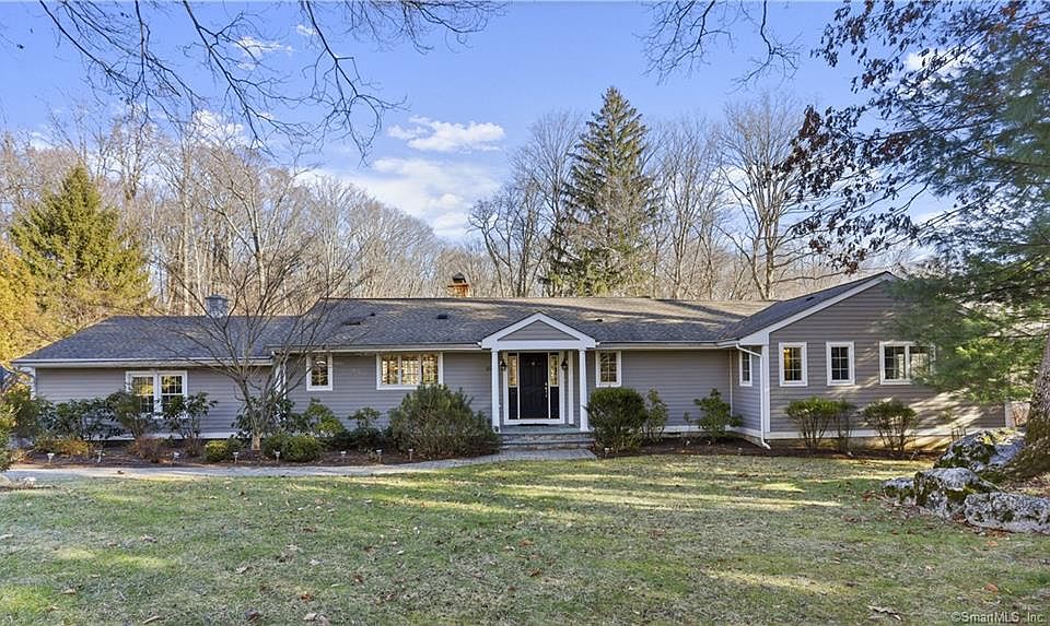 Light & bright Ranch on charming, landscaped acre in desirable Sawmill Assn features lovely patio-including great stone fp-and tranquil pond views offers easy living and ideal in-law/au-pair set up. Beautiful hardwood flrs welcome you in to the Entry Foyer & on to the sun-filled Living Room with tray ceiling, bayed window with window seat & gas fireplace shared with the generous Dining Room that can easily accommodate all your entertaining needs. Dining Room opens to the Eat-In Kitchen also featuring tray ceiling, granite counters, s/s appliances including gas cooktop & separate beverage refrigerator. Mudroom area with stone tile & spacious laundry room with doors to both 2 car garage and rear yard. Powder Room centrally located off of the Entry Foyer plus Walk-In Coat Closet. The main level bedroom wing showcases Master Bedroom with soothing pond views, Master Bath with marble heated floor, whirlpool, double vanity, double shower & private water closet- plus generous walk-in closet. Two additional Bedrooms with Full Jack & Jill Bath complete the first floor. The walk-out lower level has tremendous space & offers flexible living options. On this level you'll find a bright & sunny Family Room with stone, gas fireplace & French doors to patio, Playroom set up for fun & entertaining with wet bar, mini fridge & microwave, separate & open Office, large Bedroom with walk-in cedar closet & Full Bath with steam shower. Nothing to do but move right in - you'll love to call this home!