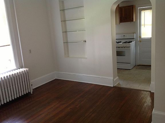 Totally repainted! First floor 1 large 1 bedroom rental! Formal Dining room, Living room, Bedroom, kitchen, HUGE full unfinished basement with laundry hook ups and tons of storage space. Hardwood floors through out, newer windows, private parking pad in back for 2 cars, and private back entrance. Efficient gas heat and newer gas hot water heater. Pets are case by case basis. Background check required NO FEE 1.5 month sec