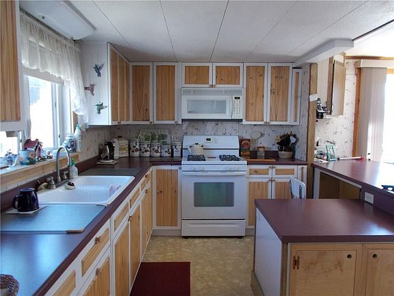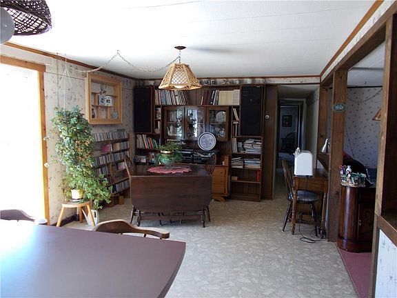 This 3 bedroom, 1.5 bath ranch style home has approximately 1394 square feet to move about and sits on 2.6 acres of land. The original 1969 single wide was 12 x 56. In 1977, the original home and a 12 x 56 addition was built on top of a 56 x 24 poured concrete foundation. (So the entire home is under a full foundation). Metal roof, vinyl siding and windows have been updated. This home is nicely located near recreational trails, has a 2 bay detached garage, a porch and deck along with a paved driveway. The heating system can be used with wood or oil. Propane gas stove and newer cupboards add modern touches to the kitchen. The open concept of the kitchen, dining and living room area are appealing for entertaining. Call or text today for a showing.
