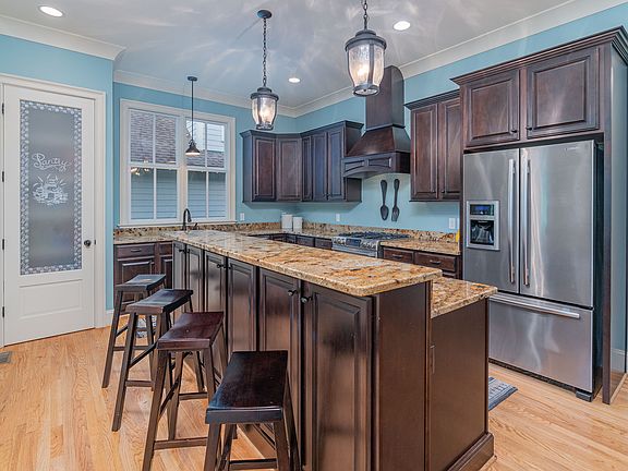 - RoomKitchenFeatures: Granite Counters, Kitchen Island, Pantry, Recessed Lighting, Floors-Hardwood, Cabinets-Stained