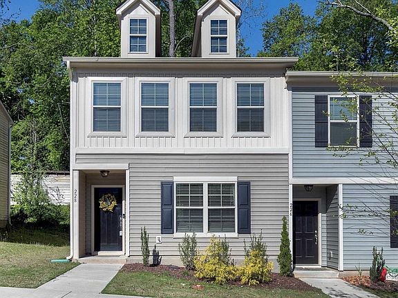 This charming like new end unit townhome located just 2.5 miles from DT Cary boasts a private fenced backyard. Beautiful spacious open concept 1st floor living/dining/kitchen. Primary ensuite bedroom and 2 additional bedrooms with hall bath on the second floor. Convenient laundry on first floor with additional half bath for guests. Custom live edge island/bar in kitchen. Stainless steel appliances, granite and luxury vinyl tile. Home backs to wooded area. Quiet TH Community with 2 convenient assigned parking spaces right up front plus an extra assigned space. Great for first time buyer or investor. Near NCSU, NC State Fair Grounds, WakeMed Soccer park, mins to major hwys. Showings begin Friday 4/14.
