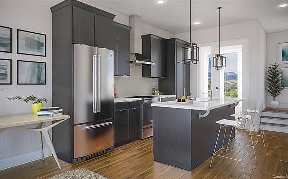 MOVE-IN READY! Enjoy sweeping views of Uptown in your very own rooftop terrace from the ever popular Seversville neighborhood. Contemporary architectural style & modern interior design. Kitchen features modern textured European flat panel cabinets. Designer pendant lights over island & Whirlpool SS convection oven & dishwasher, canopy hood w SS microwave drawer built into island. Quartz countertops in Master & Kitchen. Walk to Blue Blaze Brewery or Greenway & Trolley to Uptown at this convenient location! PRICE INCLUDES: 3rd bedroom door, hardwood throughout, tile showers in master & 3rd bath.