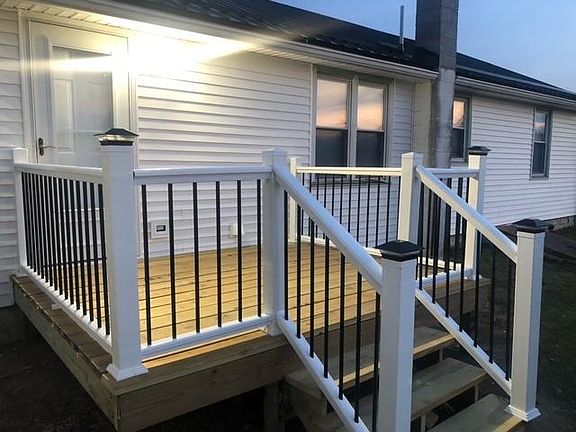 Freshly renovated single family ranch style home in MIFFLINVILLE PA, NOT NESCOPECK. For some reason Zillow would not accept the correct MIFFLINVILLE address. Everything is new, roof, siding, doors, bathroom, kitchen, paint, flooring, furnace, etc. Tastefully appointed interior and exterior. Interior has spacious gally kitchen with new stainless steel appliances including dishwasher. Laminate flooring throughout. Bathroom was completely replaced with quality finishes. Added laundry room, new forced hot air furnace, all new electrical wiring and service. Property has a large yard, new deck, basement walk out exit, one car garage, next to the community tennis court and offers plenty of space inside and out. Tenant is responsible for heat (oil furnace of electric baseboard), electric, water, cable and trash. Owner pays sewer fees and property taxes. Tenant is responsible for lawn care and snow removal. Property requires a one- year lease, first month and security due at signing. Small dogs allowed with additional security and monthly fee. Property is a no smoking property including vaping. Off street parking, driveway will accommodate two cars.