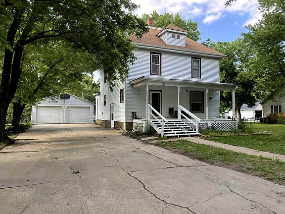 Directions: From the intersection of Highway 77 and South Colorado Avenue, travel North 9 Blocks to West Elm Street, turn West and the house is the 5th house on the north side of the street. Main Level: Entry Foyer, Living room, Dining room, Kitchen, Laundry, Bathroom Second Level: 3-Bedrooms, Bathroom Basement: Storage Space, Potential for more finished square footage Property Features: # Conforming Bedrooms = 3 Total Bedrooms = 3 # Full Bathrooms = 2 # Half Bathrooms = 0 Fireplace = N/A Flooring = Hardwood & Linoleum Water Treatment Systems = Reverse Osmosis Interior Amenities = Tall Ceilings, Ceiling Fans, Laminate Counter-top, Wood Cabinets, Sump Pump, Updated Plumbing Exterior Amenities = Covered Front Porch, Patio, Large Yard, Large Concrete Driveway, 24×16 Storage Shed Personal Property Included: Refrigerator, Oven/Range, Dishwasher Property Specifications: Lot Size = 18,700 Sq. Ft. Built = 1900 Style = Two Story Sq. Ft. = 2,010 Foundation/Basement = Full Unfinished Exterior = Metal Roof = Asphalt Shingles Windows = Storm Water/Sewer Type = City Water, City Sewer Fuel = Gas Heating Type = Central Forced Heat Cooling Type = Central Forced Air Water Heater = Gas Electrical = Breaker Box Garage Type = 38×22 Detached # Garage Stalls = 4 Driveway = Concrete Outbuildings = 24×16 Storage Shed Fencing = N/A School District = USD 498 County = Marshall 2021 Property Taxes: $1,594.02