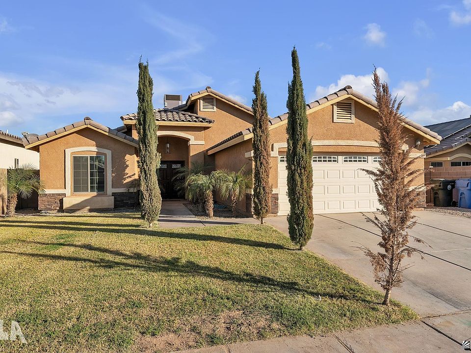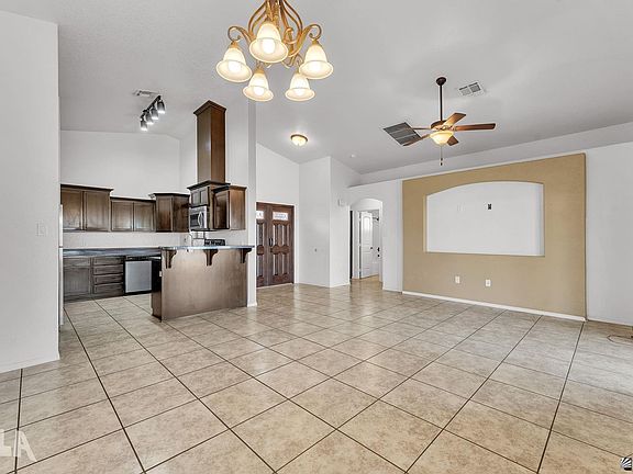 Welcome to Veranda Estates featuring this charming 3 bed, 2 bath home with over 1,300 sq. ft., vaulted ceilings throughout and an inviting open floor plan. The spacious living and kitchen areas boasts tile flooring, seamlessly connecting a cozy dining room with a bay window. The kitchen offers SS appliances, breakfast bar seating, and ample cabinet and counter space. The primary bedroom showcases a spacious layout, dual vanity sinks, separate shower, and walk-in closet. Outside, you'll enjoy a lush backyard with a covered patio and BBQ area, ideal for outdoor gatherings. The home also includes double gates for added convenience. Call for your showing today!