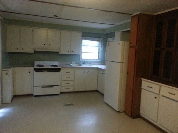 Level lot with cement patio out back, gravel drive, shed for storage, features are 2 bedrooms, laundry room, eat in kitchen/dining, family room with wall heater and some of the appliances. Must see inside. Bigger then it looks.