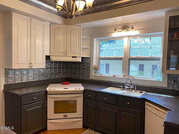 A must see! Charming, updated two-story home centrally located in the heart of Bismarck welcomes you and is move-in ready! Beautiful kitchen with convection oven and an abundance of cabinetry, tin-tiled backsplash and tin-tiled ceiling with crown molding adds to its beauty. Easy access from kitchen to deck. Dining room has tin-tiled ceiling and French doors leading to large deck for entertaining. The openness of the main floor has beautiful arches connecting the living room, dining room, and reading nook. Main floor also features an office with a built-in wraparound desk. Reading nook has a large window to let in an array of light as you enjoy your next bestseller. Large family room with newer vinyl plank flooring and recessed dimmer lighting. Primary bedroom features built-in dressers and covered balcony. Full bath has newer granite countertops and clawfoot tub. Lower level has a third bedroom, three-quarter bath, large family room with newer vinyl plank flooring, and built-in entertainment center. Room to grow with an unfinished fourth bedroom. Nice size storage room in lower level. Exterior features include fully fenced yard, shed, parking for multiple cars, and large deck. This home is move-in ready! Call your Realtor today for a private showing.