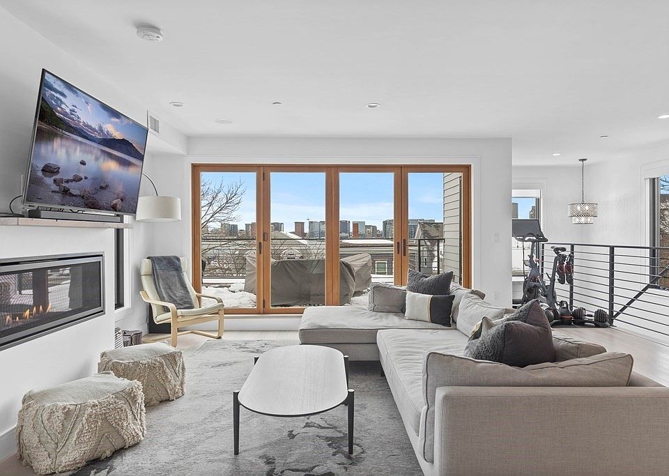 Presenting 228 Webster Street, PH4, in East Boston. An entertainer's dream condo, this unit's open concept layout pairs perfectly with is roughty 200sf private deck, offering a gas line for grilling, scenic harbor views, and a bi-fold door for a true indoor/outdoor living experience. The living room features a cozy gas fireplace, SONOS ceiling speakers (also in the primary suite), and large picture windows. The kitchen is complete with a white Fisher & Paykel fridge & gas oven, gorgeous VIGO faucet, rose gold hardware, wine fridge, a crisp white quartz waterfall island, the list goes on!. This unit offers 2 full bathrooms (including the primary en suite) and 2 spacious bedrooms - the primary bedroom features custom built-in closet storage, W/I closet, and second private deck! Laundry in unit, 1 deeded storage unit, 1 parking space. This won't last!