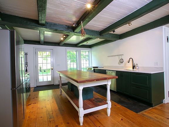 Beautifully maintained Center Hall Colonial offers old-world charm with exposed beams and wide plank floors. The home features large rooms perfect for entertaining or comfortable country living. This home is located in the picturesque town of Rowe and provides year-round pond views. Privacy and nature abound as the home borders conservation lands. This charming home features a huge, recently renovated kitchen area, a guest suite with separate entrance, sleeping loft, kitchen area and a new bathroom. There is a first-floor bedroom with a fireplace and a large living room. There are two spacious bedrooms upstairs, one with a half bath, the other with a fireplace, and a separate home office. There are several covered porches where you can enjoy the peaceful setting. Low taxes, private Pelham Lake!