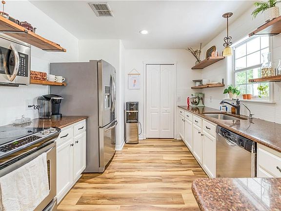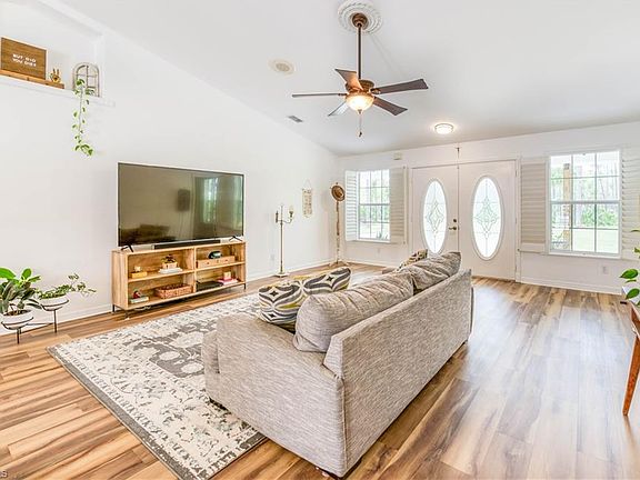 This home is full of Southern charm and sits on 2.5 acres! Picture yourself relaxing with a cold glass of lemonade on the front porch, surrounded by GORGEOUS flower beds, looking out over a huge immaculate front lawn (all of which is maintained by professional landscapers). The front door brings you into a bright, spacious modern farmhouse style living area with vaulted ceilings and shuttered windows. The kitchen is on trend with exposed shelving, updated appliances, and granite counter tops. The 3 bedrooms and 2 full baths are arranged in a split floor plan which is ideal for a family or entertaining guests. The back of the property offers a built in fire pit, a chicken coop, and plenty of space for other animals upon approval. Additionally, this home has a reverse osmosis water system, an extremely long paved driveway, a two car garage, and a shed. This is a must see!