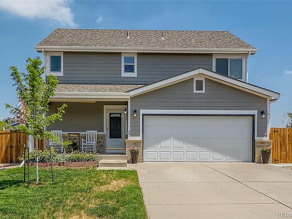 Back on the market due to buyer's loan. This is your chance to jump in and make this beautiful home, your own. Spacious 4 bedroom, 4 bathroom home with over 2100 finished square feet. Open, sun-filled floorplan. Two story living room with fireplace and ceiling fan. Dining area with sliding door to beautiful new deck. Kitchen includes, hardwood floors, granite counter tops, and a walk-in pantry. The laundry is conveniently located on the main floor. Owners Suite with ceiling fan, walk-in closet and an owners bath. Two additional bedrooms plus another bathroom upstairs. Finished basement with the 4th bedroom, a full bathroom and additional storage space. Newer Water heater! Enjoy a fully fenced, private, backyard with an enormous patio, a shed, vegetable gardens, maple and crab trees and lilac bushes. Enjoy the Small town atmosphere of Strasburg without giving up all of the amenities of Denver. This is an easy commute to Downtown Denver, Buckley Air Force Base, Anschutz medical campus, the DTC and DIA. Strasburg is great for those who want to be outside of the busy city and don't mind a short commute. Don't miss out on this wonderful home. BACK ON MARKET! Buyers financing fell through.