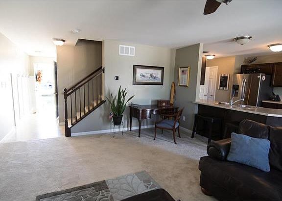 Beautiful 3 bedroom townhome that boasts a fantastic open floor plan including a large living space and dining area, all perfect for entertaining. The modern electric kitchen features a smooth top range, built in microwave, breakfast bar and plenty of cabinet and counter space. A breakfast room leads to a stunning deck with a spectacular view that is perfect for outdoor entertaining. An updated powder room completes the main level. Upstairs the master suite offers a luxurious bathroom with separate tub and shower, and two walk-in closets. The upper level also offers two additional bedrooms, a second full bath, and convenient laundry room. This total electric home also has a full basement that could easily be finished to add to the living space of the home. An attached two car garage completes this home. Walking trails and woods are an amazing backdrop to this private community. Close to shopping, restaurants, highways and so much more.