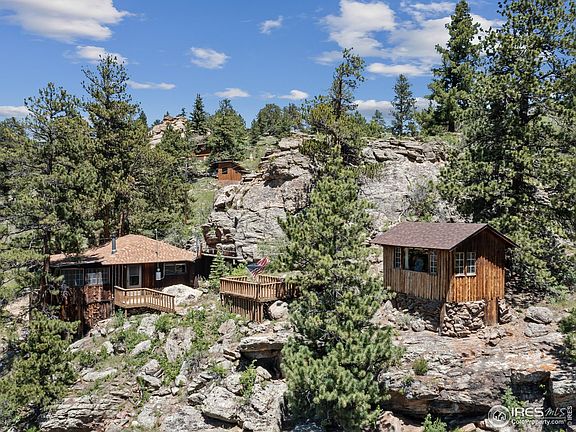 Once-in-a-lifetime opportunity to own a piece of Estes Park history! Original owner, circa 1927 summer cabins on Holy Hill with 2.75/acres of your own mountain with expansive Continental Divide views. Main cabin features vaulted living room, woodstove, big-view windows, 3 bedrooms and all original finish, plus a modern kitchen and full-bath. Detached guest cabin is a 4th bedroom for those full weekends when everyone comes up. No HOA, rentals allowed, subject to County regulations and permitting. Road & water association is $995/year. Offered fully furnished and ready to start making memories!