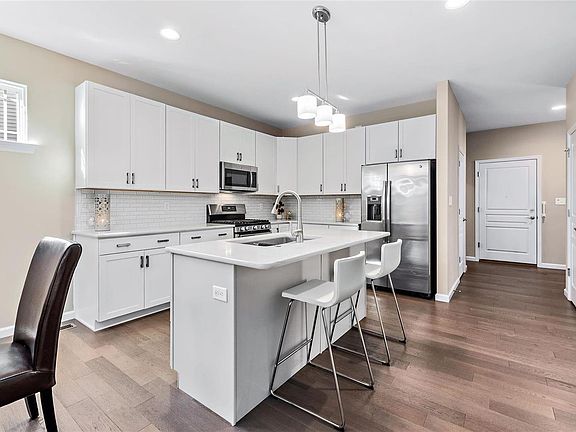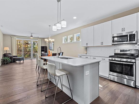 Enjoy a carefree lifestyle in this beautiful 6 year old detached villa on a premium lot! Have coffee on the screened porch surrounded by perennial flowers, or on the peaceful patio, backing to trees and the walking trails at Blanchette Park. The open floorplan features 9’ ceilings and gorgeous engineered wood floors. A user-friendly kitchen boasts 42” white custom cabinetry, stainless steel appliances, pantry, gas range and quartz countertops with sleek backsplash. A large center island provides seating and a deep double sink. Main floor primary bedroom has an en-suite bath with shower and adult height double vanity. Secondary main floor bedroom has access to another full bath with adult ht. vanity and a tub/shower. Main floor laundry with sink. 9 foot pour in lower level is ready for your finishes with a bath rough-in and egress window. On a quiet cul-de-sac convenient to highways, park & pool, shopping and restaurants. Location: Detached, Suburban