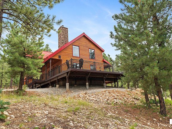 Come enjoy this beautiful custom built cabin surrounded by trees in the Strawberry Pines Subdivision. This home offers granite counter tops throughout, custom made cabinetry, hand shaved flooring as well as tile in the bathrooms. You will love the woodburning fireplace in the living room to keep you warm on those chilly days as well as a propane fireplace in the master bedroom. New large trex deck added for a great place to entertain. Enjoy sitting amongst the trees and watching the deer and antelope with the meadow views. Lot is .97 acres with a storage shed and a detached garage with large sleeping quarters, full bath and own water heater. New Generac generator is included with sale. Cabin comes turn key. Vacation Rentals allowed in this subdivision. $1,000 bonus to buyers agent.
