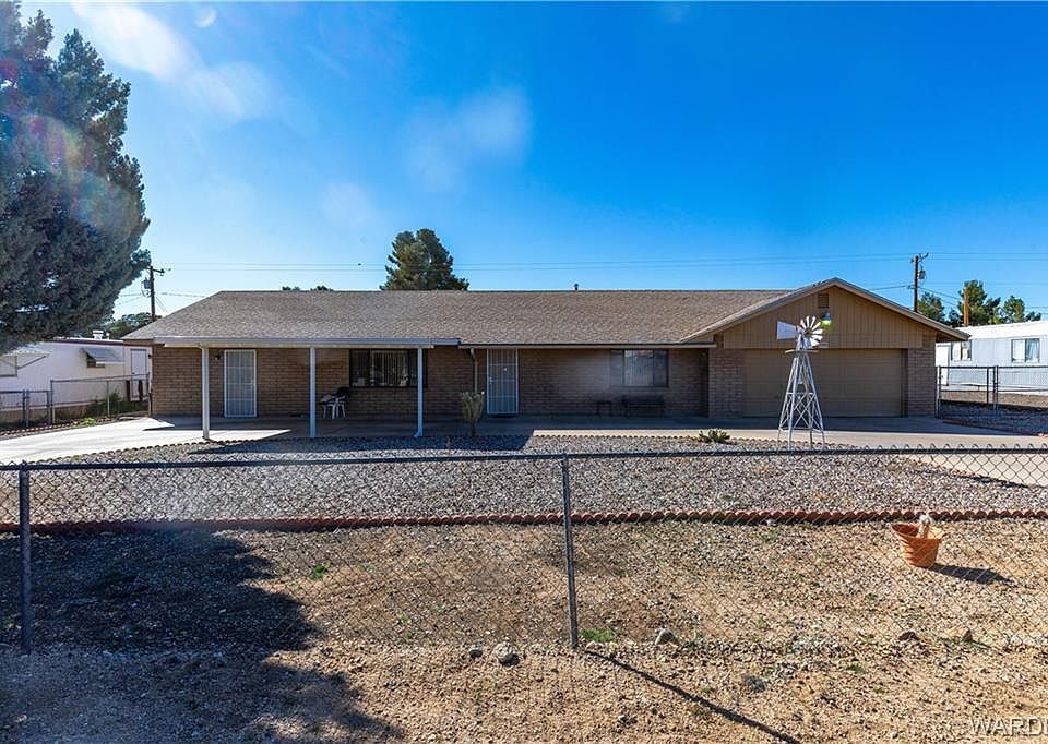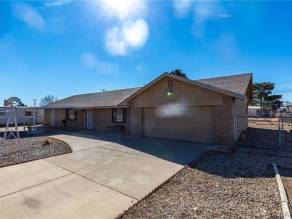 This 3 bedroom 2 bathroom home with 2 car garage that is double car deep W/220 outlet** a 1700 sf+/- quality site built home* deep 796 sf garage*Fully fenced with cyclone fencing* Double sided RV gates** Plenty of concrete parking with the large circular driveway* Mature shade tree*Decorative crushed rock for low maintenance landscaping* Covered front parking* quality slump block construction*asphalt shingle roofing*Rain gutters*Open floorplan* large inviting living room with large view windows, ceiling fans & newer carpet flooring* Spacious dining area off the kitchen with sliding glass door to rear patio* Bright open kitchen with breakfast bar, kitchen island, gas range stove/oven, dishwasher, pantry** Split bedroom floor plan offers quiet evenings in the king-size owners suite with double wall closets, privacy bathroom with large vanity, dual sinks jacuzzi tub, separate walk-in shower & skylight* 2 guest bedrooms and full size guest bathroom with tub/shower combo* Large indoor laundry room with built in cabinets & door to rear covered patio* Water softener* Spacious rear yard, complete with crushed rock & covered patio to enjoy the Arizona evening sunsets** Or sit on the front porch or enjoy a hot cup of coffee and watch the morning sunrise* Low taxes walking trails and gorgeous mountain views all around* Many off-roading trails close by for fun entertainment* enjoy our great weather *Kingman is within 40 minutes to Laughlin Nevada Casinos, Colorado River Boating & Lake Mohave's fishing* 2 hours to Las Vegas Nevada* Bring the family, bring the friends and make this home*