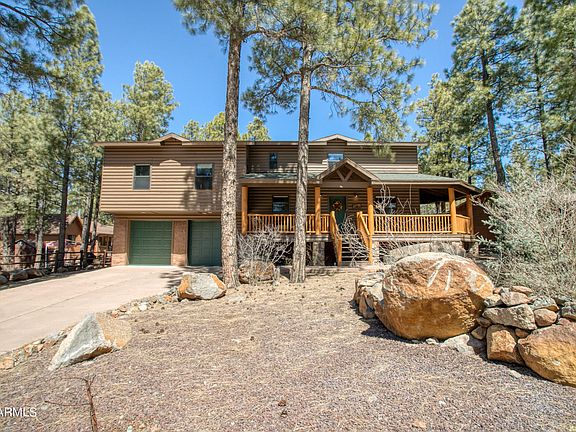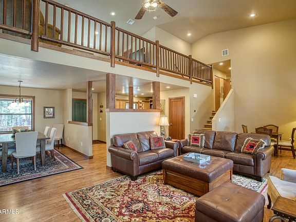 Welcome to this beautiful cabin home located in the prestigious gated community of Pineridge Estates in Pinetop.This home is located on a nice lot with great curb appeal. This home has been gently used as a second home . Once you enter the door, you will be greeted by the open floorplan and vaulted ceilings.The kitchen has plenty of cabinets and counter space for all of your dining needs. A dedicated dining area to host your guests and family. The large family room with vaulted ceilings and a gas fireplace with stone from floor to ceiling is an eye catcher and will be the focal point of this space. Upstairs is the the primary bedroom and two secondary bedrooms. The primary has its own combination tub/shower and walk in closet. The two secondary bedrooms also offer a loft which has been a fun area for kids to hang out in and have as a fort. There is a large loft that adds so much extra living space to the home. This is a great place to cozy up on the couch and watch movies while enjoying the views of all the surrounding windows.Enjoy the scenery from your back and front patio..many relaxing evenings enjoyed sitting and watching the sunsets. This home is located in close proximity to town and wonderful shops and restaurants. The home is 30 minutes from Sunrise Ski Resort and many lakes located in the area. This home has been recently painted on the exterior....offers two hot water heaters for much hot water needs. It is hard to find a home with 3 bedrooms and 3 bathrooms with a loft in a community such as Pineridge Estates.