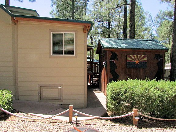 Beautiful 2 bedroom, 1 king 1 queen, 2 bath, loft w/2 twins, park model located in White Mt Vacation Village. 2X6 construction, wood veneered walls, vaulted tongue and groove ceilings and loft. Custom Hickory cabinets and walls, c gazebo, covered deck and loads of custom storage. Hardy Board siding, metal roof, utility shed with washer, dryer, and work shop, parking for 2 cars, mature Ponderosa Pine and oak trees on property, partially furnished. Many upgrades, must see to appreciate, ready to move in.