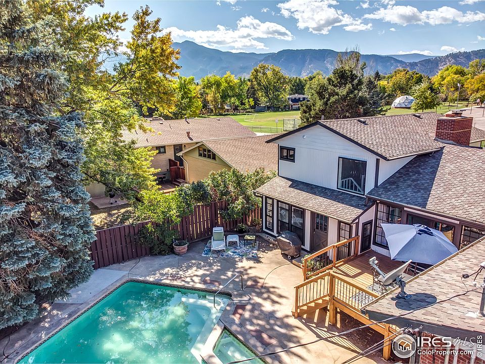 Best price per sq ft in Nobo PLUS you can offset your mortgage by ~$2500/month with the licensed ADU downstairs and STILL have a 5bd/3bth to call your own! Huge corner lot and pool make this the perfect spot for fun in the Colorado sun. Great location and potential! The 7 bedroom/4 bath floor plan, includes a 2 BR/1 bath, licensed ADU with successful rental history. Relax on the new deck overlooking the backyard swimming pool! Remodeled kitchen with stainless steel appliances, black granite counters, farm sink & huge island, plus the oversized refrigerator & freezer can handle a crowd. Recently refreshed with paint inside and out, refinished floors + some new interior doors and hardware. Open floor plan with large rooms and separate living areas makes this house perfect for separating activities while being together. Huge stone fireplace adds warmth to the great room. Private primary suite with ensuite bath, 2 walk in closets & mountain views. Fenced 1/2 acre yard for kids, dogs & fun outdoor activities. Roomy apartment can be part of the house or with a separate entrance, full kitchen & laundry, it is great for a home business, live in helpers, in-laws or extra income. Central Boulder location with playgrounds across the street and tennis court and Salberg Park just blocks away, plus just about a mile from Pearl Street, Ideal Market and Beleza Coffee!