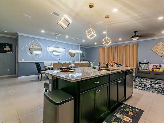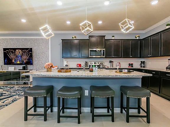 This Ten-bedroom, Eight-bathroom open-floor concept home offers all your family, friends, and possibly guests' need! The kitchen-living-dining is perfect for gatherings, and the views of the beautiful pool backyard are amazing. The backyard offers a large deck, and the pool includes an inground jacuzzi. The kitchen features all stainless steel appliances, dark color cabinets, and granite countertops with eating space. Also, on the main level, you'll find the laundry room, half bath, and garage, which was turned into the perfect game room. As you walk upstairs, you are greeted by this massive, beautifully decorated loft. All the themed rooms were carefully decorated to make your guest and family feel like they are on a Florida Vacation. The HOA amenities include a waterpark-style community resort pool with dueling slides- lazy river- hot tub/spa- splash pad-pool side miniature golf course- outdoor bar and dining- fire pit area- clubhouse- fitness center- arcade/ gaming room- playground- basketball courts- soccer fields & more! Close to Disney & other Theme Parks, Local Attractions, Shopping, Restaurants, Orlando International Airport & Major Highways taking you to the Beaches... Location is KEY!