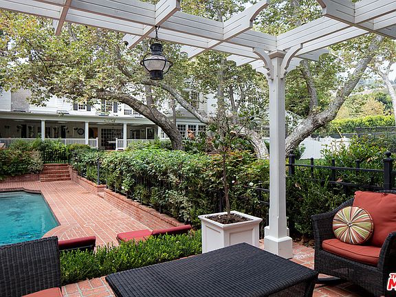 Set amidst sculptural old grwth sycamores on just under 18k Sq Ft of all usable land lies this extremely special classic N. Eng. Trad Estate. Wful chrm, grt architecture inside & out, ideal flr plan & gorg gardens consisting of gated circ drive, lg entertaining veranda, expansive grassy yd & pl. Inviting fml entry leads to well detailed LR w/FP, FDR, paneled lib w/FP & fab grt rm w/cook's kitch, lg sit area w/FP & breakfast banquette, --all opening to fab porch & grdns. 5 BR w/en suite BAs, incl a fab owners suite w/sit area, FP, lg sunny BA & 2 walk-ins, + a lg downstairs gst BR w/French drs opening to the grdn. All the signature elements of the period & style can be seen incl wood flrs, crown mldgs, wainscoting, paneling, beamed ceils & 4 wd-brn FP. Reminiscent of a bygone era, yet w/every possibility amenity & comfort for todays lifestyle. Gated & pvt, w/grt st presence & warmth & charm thruout. This magical property will inspire you the moment you arrive. A true gem!