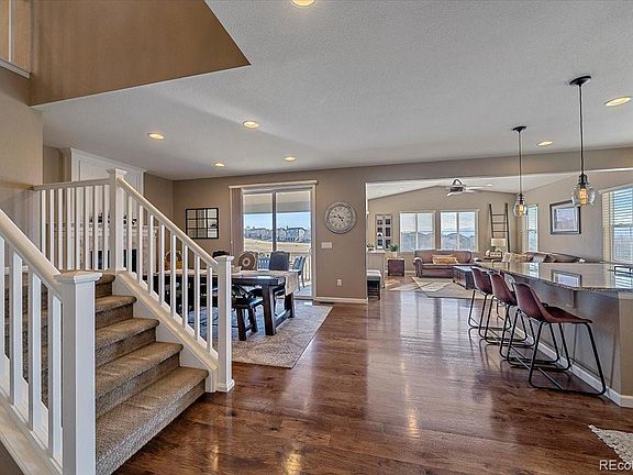 Could have been a model home! Located on the golf course, in a cul-de-sac, every room, patio, and deck on the back of the house has unstoppable views of both the golf course and mountains. Sellers had Ginger Hawk Custom (re)finish the basement, build/install the custom barn doors, and the two incredible marble inlaid fireplaces with gorgeous mantles. Finished basement includes open entertaining area with huge wet bar that boasts butcher block tops, custom lighting, bar sink, dishwasher and two beverage coolers. The herringbone tile floor leads into the carpeted family/entertainment area. Also has a private bedroom with amazing views and modern farmhouse bathroom with industrial touches. Let's not forget the large storage space that remains for all of these seasonal items that need neatly tucked away. This impeccable home has an open, airy feel with tons of living space. Beautiful hickory hardwood floors greet you as you enter, and are only the beginning, to the welcome feel of this home. Gourmet kitchen with butler pantry/area with the large center island add to its ambiance. Let's not fail to mention the large bedrooms, immaculate primary bedroom and bath with custom barn doors, his/hers walk-in closets, deep walk-in shower, soaking tub, and dual vanities. So much to talk about! This is a MUST see, to believe, home. Sellers can give immediate occupancy. Community has access to an amazing club house with fitness center and member access only pools. Located in a part of Vista Ridge with the easiest access, in a private cup-de-sac, near lots of amenities including a 5 minute drive to the grocery store and 2 major highways.