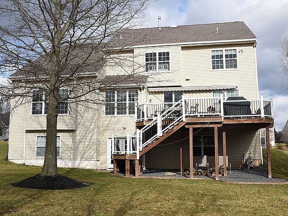 This expanded Brinton Grand Model featuring a Federalist elevation with brick facade, a covered front porch and 2-car side-entry garage is located in the much sought-after community of Devonshire Estates and the highly acclaimed/ranked Blue Ribbon Central Bucks School District. The dramatic 2-story foyer includes hardwood flooring, decorative moldings and a turned staircase with hardwood stairs and a new carpet runner. The the right a private study features a walk-out bay window, hardwood flooring, and custom built-in shelves and cabinetry. The freshly painted formal living and dining rooms include newer hardwood flooring and custom crown and chair moldings. The gourmet chefs kitchen boasts 24 tile flooring with Nexans radiant heat, upgraded cherry cabinetry with undermount and above-cabinet lighting, granite counters with a travertine tile backslash and stainless steel undermount sink. Also featured are stainless steel appliances including a dual fuel GE Monogram 48 professional range with double convection ovens boasting 6 burners, a griddle, a pot filler faucet and a high efficiency exterior vented hood, a microwave, a Bosch dishwasher and a commercial Thermador/Bosch side by side refrigerator and freezer (2011). Also featured is a spacious center granite island with additional cabinets/drawers and an undermount microwave, a coffee/bar/beverage center, a breakfast room, walk-in pantry and a garden bump-out extension with a door exiting to the expansive Brazilian Ipe hardwood deck (2002) refurbished in 2020 with TREX Transcend railing system and gate, a motorized CraftBilt retractable awning, and stairs down to the private backyard and small paver patio. Relax or entertain in the soaring 2-story family room which includes 24 tile flooring with Nexans radiant heat, a cozy gas fireplace with built-in TV/audio cabinet above and a convenient back staircase leading to the upper level. A spacious laundry room with granite counter & stainless laundry sink, as well as a charming powder room completes the main level of this most elegant home. The freshly painted luxury owners suite features a tray ceiling and spacious sitting room/2nd office, Lifeproof 360 plank flooring (installed in 2021), a linen closet, 2 walk-in closets, and a large bench seat with triple box window. A newly installed (2021) opague glass barn door leads to the spa like owners bath(remodeled in 2021). Schluter radiant heat warms the inviting slate-look porcelain floors. Soak stress away in the contemporary freestanding tub with adjacent recessed niche shelf and wrap yourself in a luxurious warm towel from the heated towel warmer. The stunning vanity includes double under-mount sinks and an illuminating LED mirror. The diamond shaped seamless shower featuring porcelain tile, marble accents, dual shower heads and wall niche completes the luxury bath. Three nicely appointed bedrooms featuring Lifeproof 360 plank flooring, a renovated hall bath, an open loft computer desk area and a linen closet completes the upper level. The finished walk-out, daylight basement includes Berber carpeting, a recreational room (20 x 17), and adjacent exercise room (34 x 15), a full bath with tub/shower and an unfinished storage area (33 x 19) to complete the lower level of this spectacular home. Other amenities include a dual zone HVAC system (2013) with General Aire UV air purifier and humidifier, Rheem hot water heater (2021), new windows (2020) (except Anderson casement windows in kitchen), new roof with 30-year architectural Timberline shingles (2019), new carpet in upstairs hall and stairways (2022), Ecobee smart thermostats plus smart bulbs for exterior and family room and main bath flood lights, controlled by Home App (2021), new French doors in basement and kitchen storm door (2020) and much more. This location is commutable to Philadelphia, New Jersey, New York, Montgomery County, the Lehigh Valley and within an hour of the Poconos.*