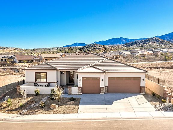 Gorgeous Agave Floor Plan! 2450 sq ft over sized 3 car garage. Walk into whole house plank tile floors, large living room with 12' sliding glass door onto huge covered patio. Upgrades include 42'' knotty alder cabs, granite, floors, front courtyard and larger garage. Front yard is landscaped and on drip, back yard is fenced. All this on a great lot at the base of beautiful Mingus Mountain.