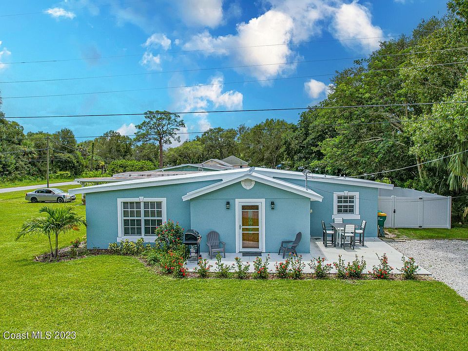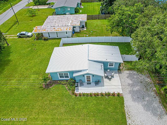 Welcome to your dream home in the heart of West Melbourne, Florida! Nestled in a tranquil neighborhood, this charming remodeled gem offers the perfect blend of modern comfort and cozy appeal. As you approach the home, you'll be captivated by its curb appeal. The well-maintained landscaping, lush greenery, and white vinyl fence exude a welcoming ambiance that sets the tone for what's to come. Step inside, and you'll instantly feel the warmth of this thoughtfully renovated abode. The open-concept living area is a testament to both style and functionality. Natural light pours in through large windows, illuminating the fresh paint and stunning tile flooring that flows seamlessly throughout. The living room provides a cozy space to unwind after a long day, while the adjoining dining area is is perfect for hosting intimate gatherings. The remodeled kitchen is a true highlight. Crisp white cabinetry contrasts elegantly with sleek quartz countertops, providing ample storage and workspace for your culinary adventures. Stainless steel appliances add a modern touch, and the cool gray subway tile backsplash ties the whole aesthetic together. The two bedrooms are inviting retreats, each offering a comfortable oasis for relaxation. Natural light continues to play a role here, enhancing the serene atmosphere. The bathroom is a spa-like haven. Featuring modern fixtures, a stylish vanity, and a tastefully tiled shower, it offers a serene space to unwind and pamper yourself. But the real magic happens outdoors. Step into the backyard, and you'll discover a private paradise. A perfect space for al fresco dining and entertaining, while the manicured lawn provides ample space for gardening, play, or simply basking in the Florida sun. The backyard is fully fenced, offering a secure environment for pets and loved ones to enjoy. As far as the location, this home provides the best of both worlds - a tranquil suburban setting that's still conveniently close to city amenities. You'll have easy access to shopping, dining, parks, and excellent schools, making it an ideal location for anyone seeking a serene yet connected lifestyle. This property is a true gem. With its modern upgrades, new elements such as a metal roof and recently installed septic, cozy charm, and inviting outdoor spaces, it's ready to welcome you to a life of comfort and style. Don't miss the opportunity to make this house your home-sweet-home!