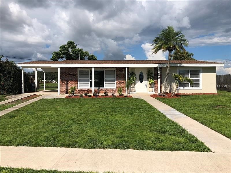 Price drop! Very motivated seller wanting to move on to the next project. Completely remodeled from top to bottom two bedroom, two bath open concept house on the water. New stucco and paint on the inside and outside. Brand new roof, interior and exterior doors, Impact glass front door, A/C System, 50 gallon water heater, granite countertops, New refrigerator to match with other stainless steel appliances. It also has brand new carpet in both bedrooms, new bathtub with tile backsplash in the guest bath. Master bathroom has a new tiled shower with a rain shower head. There is also a brand new HUGE 37x11 foot covered patio with panoramic screens so you can relax and enjoy your beautiful view of over 75 feet of waterfront. Centrally located to shopping, restaurants , hospitals and the interstate.