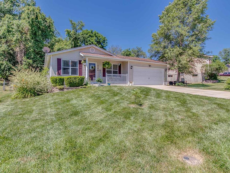 Welcome to 2280 Sunny Ridge Drive. If you are looking for location, style, updates, great curb appeal and price, look no further. This adorable 3 bedroom and 2 full bath home is move-in ready and waiting for a new owner. The front porch welcomes you as do the beautiful perennial gardens. Inside, the light and bright living room with hardwood floors flows into the dining area and the galley kitchen with loads of counter and cabinet space. (Refrigerator and stove stay). Down the hall find 3 nice sized bedrooms, plenty of closets and an updated bath. Out to the covered deck, through the 2-car, oversized garage and into the fenced back yard with a wooded area and small creek below. The lower level offers a family room, possible sleeping area and full bath, 2 spacious storage areas and huge laundry room. Located close to I 55, shopping, entertainment and loads of restaurants. Quiet subdivision and great location! You won't be disappointed! Clear Arnold inspection too!