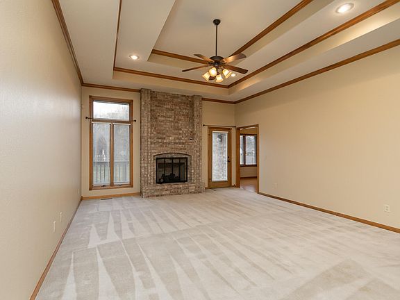 This charming and classic ALL BRICK split bedroom floorplan home is move-in ready! It boasts beautiful curb appeal--a common characteristic of the desirable Carriage Park Subdivision where owners take pride in their homes! The home features a sizeable living room and formal dining room, both with tray ceilings, the impressive brick gas fireplace in the living room has just been serviced, and the bead board in dining is new. The kitchen plus casual dining area has maple wood flooring, ample cabinet and counter space, an eat up bar, built-in desk, and pantry. The 2-year-old stainless steel fridge stays! The spacious master en suite also features a tray ceiling, walk-in closet, double vanity with new faucets, walk-in shower, and a SafeStep brand spa tub that was installed approximately 3 years ago (replacement cost with a new price tag of around $16,000)! The other two bedrooms are also spacious and have new ceiling fans, and the hall bath between them has a new faucet and soaring ceilings with a skylight. Other interior bonuses include new paint throughout, solid 6-panel doors and bullseye corner block trim throughout. The Ring doorbell and Vivint stay with the home. Out back, enjoy a peaceful morning cup of coffee from a newly stained deck looking out over a fenced and level lot with mature trees and a storage shed. There is a Hunter brand sprinkler system in the front and backyards. The home is in the top rated Kickapoo and Cherokee School Districts, and is conveniently located with quick access to Hwy 60! In a prime location, this home is also near walking trails, shopping, entertainment, restaurants, the Medical Mile, and the Rivercut Golf course! The Carriage Park subdivision includes a community pool, basketball courts, common areas, and trash service is included with HOA dues!