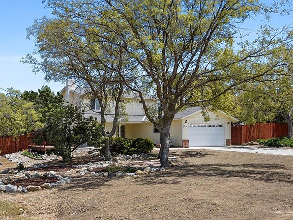 Discover this enchanting 2-story home situated in the quiet enclave of Golden Hills East cul-de-sac, designed for those who appreciate style and privacy. This residence features three spacious bedrooms, including a luxurious primary suite, and 2.5 baths. Both the kitchen and flooring have received thoughtful updates, enhancing the home's modern appeal without compromising its charm. Step outside to experience the expansive backyard, a true highlight of the property. Enclosed by a secure 6-foot privacy fence, this vast outdoor space includes mature oak trees, garden boxes, and a dedicated dog run, creating a private oasis perfect for relaxation or entertainment. Additional features include a whimsical Finding Nemo mural in one of the bathrooms, a newly installed HVAC system for year-round comfort, and a covered back patio ideal for hosting gatherings. Enjoy the serene canyon views from the side deck and the convenience of a low-maintenance front yard. This home not only captivates with its beauty but also offers practical features for a sophisticated and secluded lifestyle.