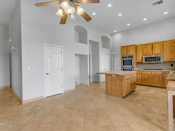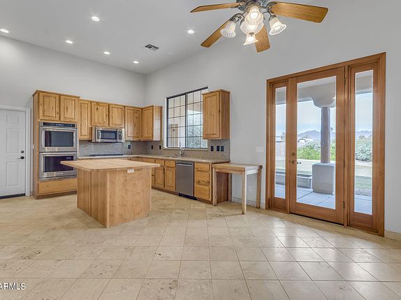 Introducing a Horse Property nestled on a sprawling 1.15 Acres with no HOA. Step into luxury with this meticulously designed 4-bedroom, 2-bathroom residence, offering an impressive 2805 sqft of living space. This home is for those seeking a perfect blend of elegance and functionality. Upon entering, you're greeted by the timeless allure of travertine tile that gracefully leads you through the well-appointed interior. The heart of the home is the gourmet kitchen, featuring granite countertops, stainless steel appliances, and solid wood cabinets - a culinary enthusiast's dream. The master bedroom is a retreat unto itself, boasting a generously sized tub for relaxation and two closets, one of which is a walk-in, ensuring ample storage spaceThe additional three bedrooms provide versatility and space for the whole family, and working from home is a delight with a dedicated office space that offers privacy without sacrificing natural light. The 2-car garage ensures secure parking, while the adjacent workshop/storage area caters to your specific needs.